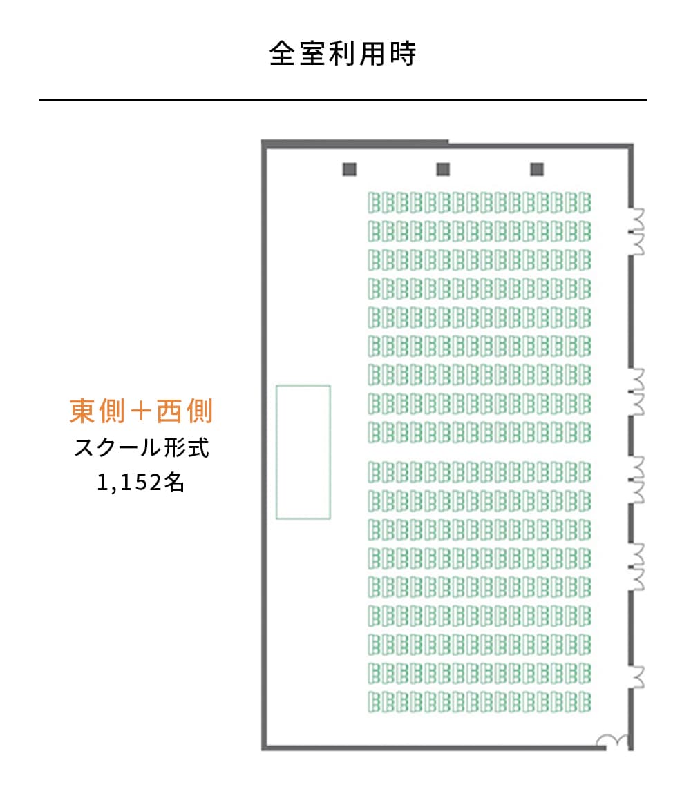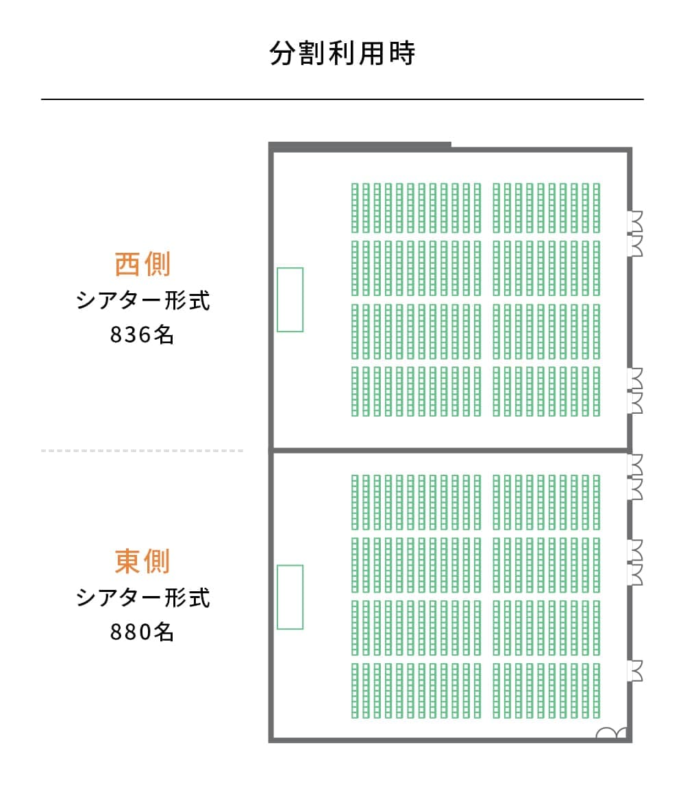 - 可動間仕切りにより、2つの会場に分割して利用可能