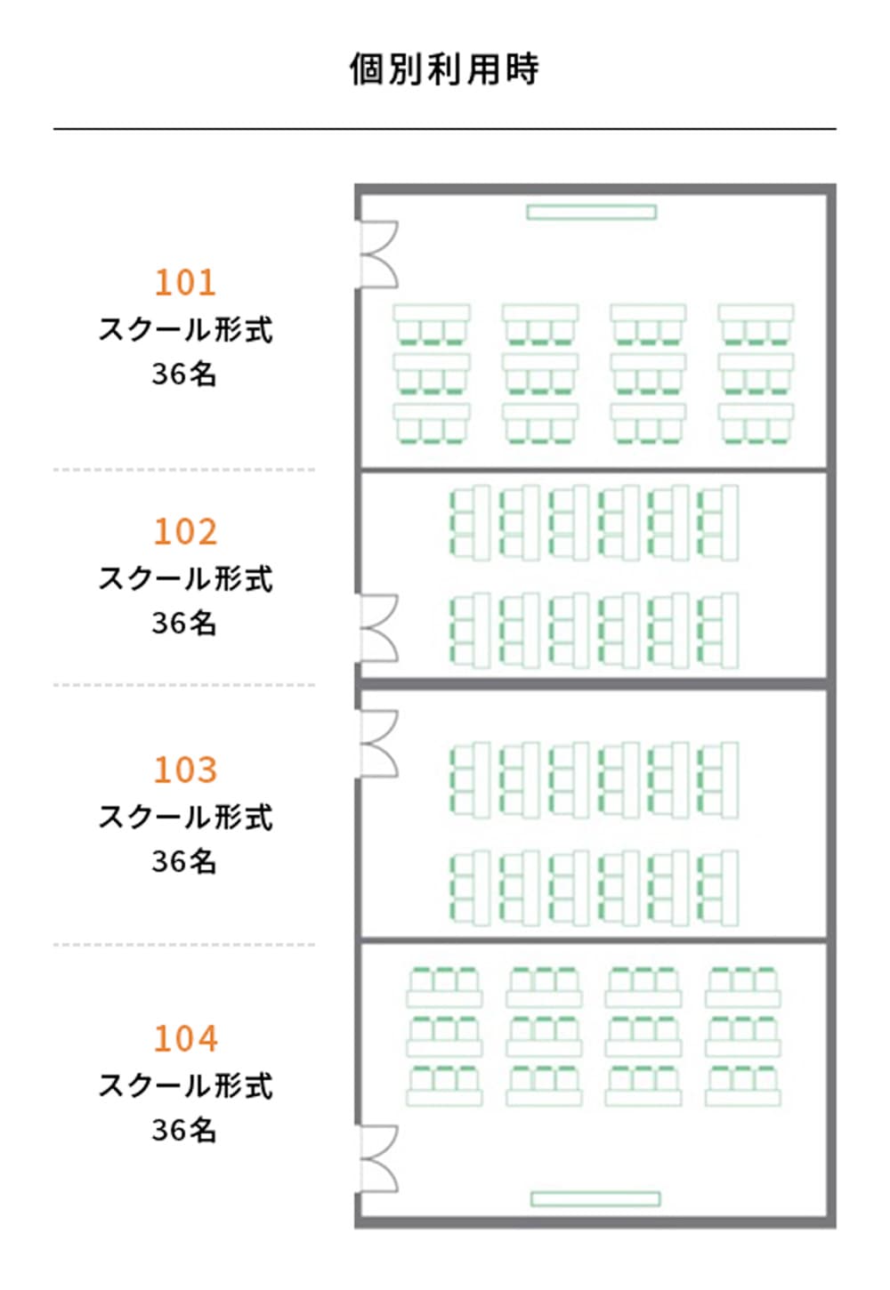 - 小会議室101~104と雰囲気の異なるデザインとしているため、用途に応じて使い分けることが可能