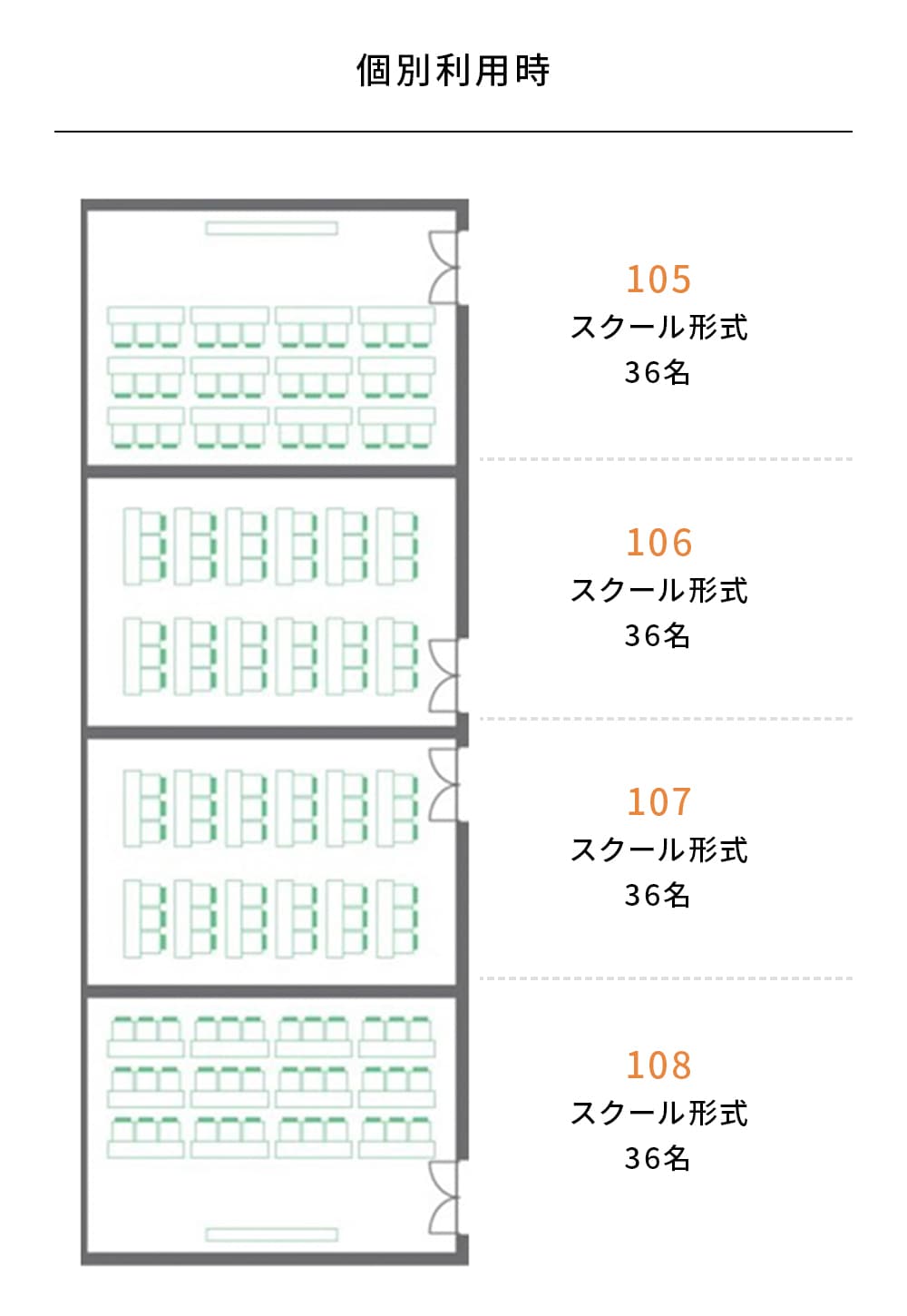 - 小会議室105~108と雰囲気の異なるデザインとしているため、用途に応じて使い分けることが可能