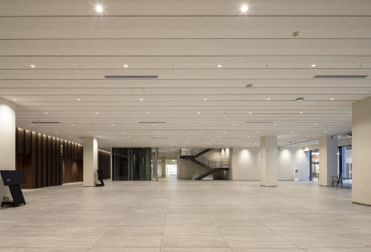 - 交流広場側のスライディングウォールを開放することにより、大ホールと交流広場は連続したスペースとなり、さらに規模の大きく開放的な物販催事やエンターテイメントイベントの開催が可能