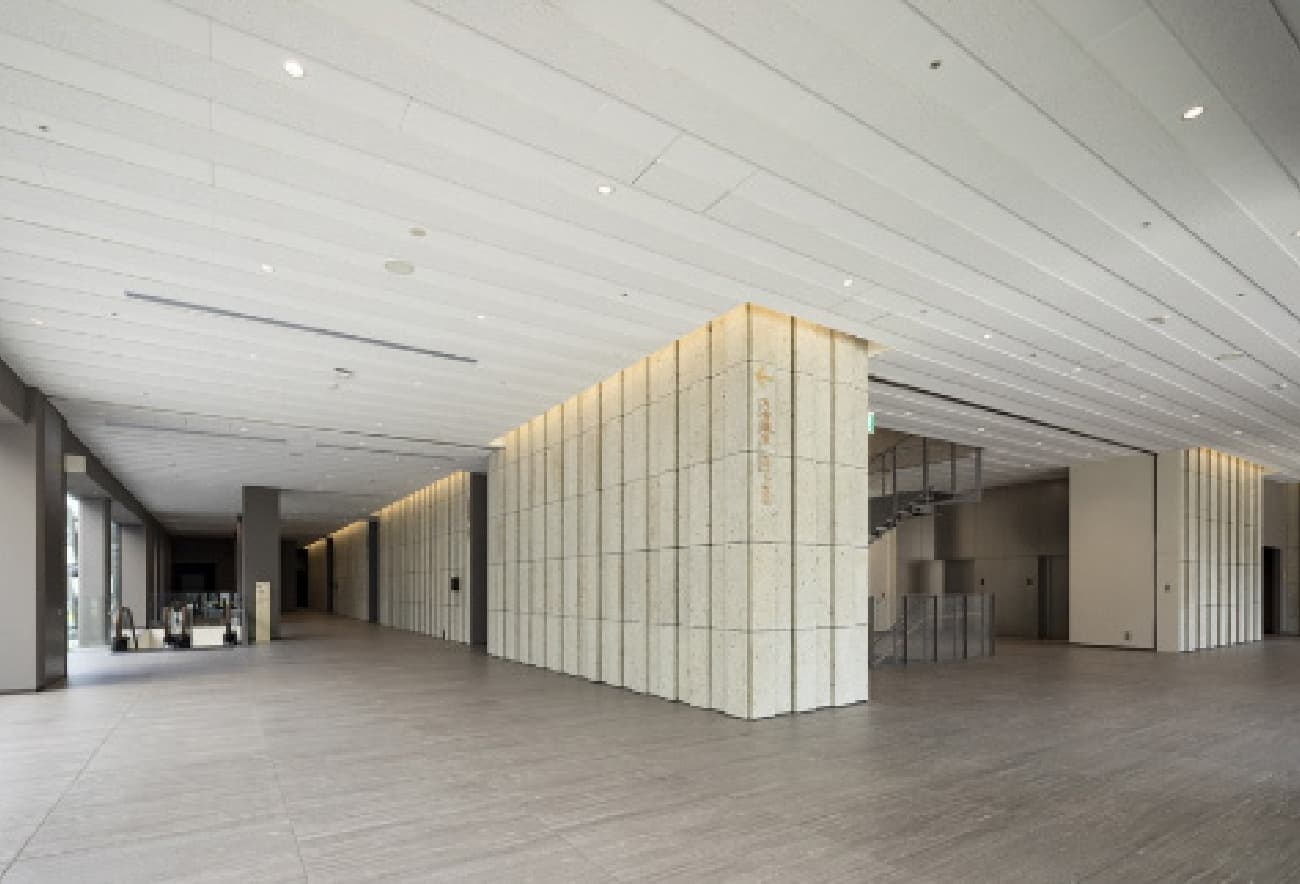 特産品である「大谷石」を活用したメインエントランスに相応しい風格のある空間