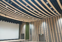 1階小会議室の一部では、地下水や地下中熱を補助熱源として活用した空調機を採用し、エネルギーの効率化を図っています。