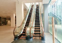 施設内のエスカレーターは人感センサーが利用者を検出し、利用者のいない時には動作を停止する省エネルギー運転設定となっています。