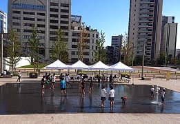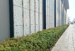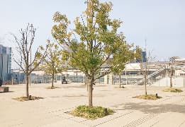 交流広場「宮みらいライトヒル」において、高木、低木や芝生を積極的に導入し、ヒートアイランド化を抑制しています。