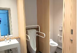 1階交流広場「宮みらいライトヒル」のトイレに「レジリエンストイレ」を採用しています。